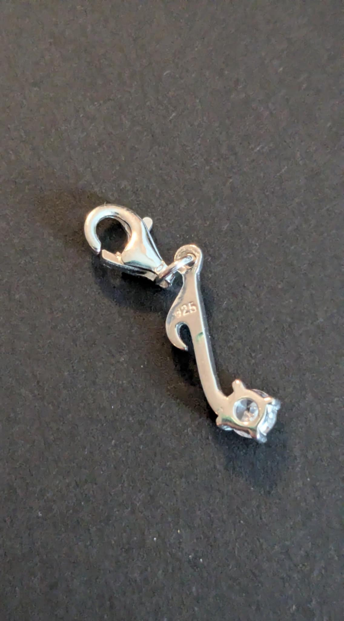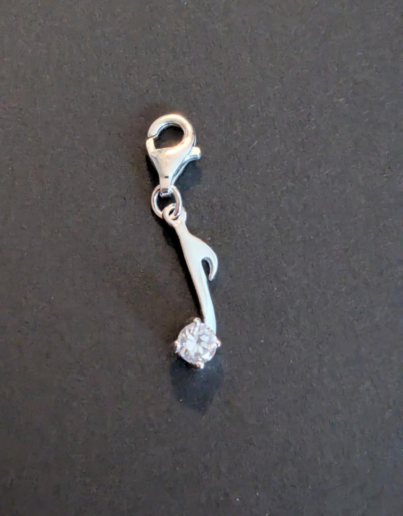 Sterling silver stamped 925 clip on charm musical note with cubic Zirconia stone.